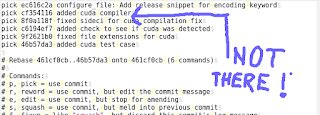 ReplyDeleteTo me it makes total sense: the merge comment was only there to track a merge, and once you rebase all merges should be gone. Hence their respective commits. As you yourself said, the reason why you rebased was to get rid of that commit, but now that git did it silently, you complain. :-)
